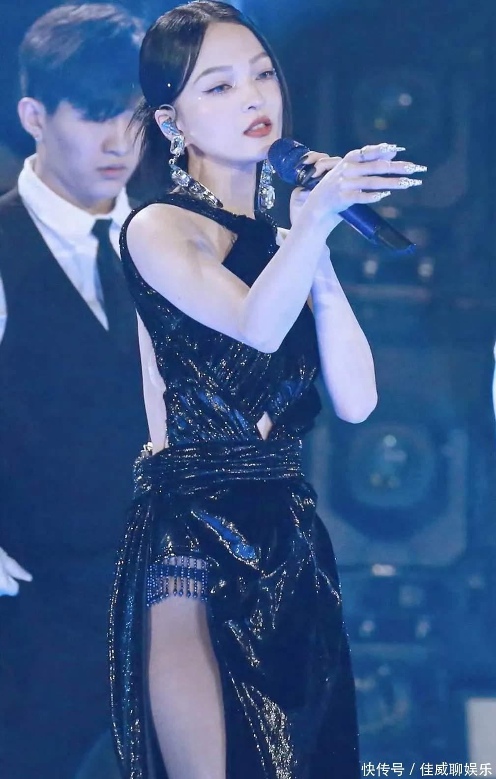 作为追了她十几年的时尚博主,看到张韶涵这套舞台 look 时直接坐直了 —— 黑色亮面挂脖长裙裹着她纤细的腰肢,腰腹处的镂空刚好露出一小片肌肤,高开叉裙摆下的黑丝衬得腿型又直又细,配上钻石耳坠的冷光,哪有半分 “年纪感”?要知道她去年在觅光演唱会上穿高定礼服时,粉丝还在喊 “欧若拉本拉”,但这套黑丝造型一出来,评论区直接吵翻:“43 岁穿这个太刻意”“清纯感没了”。